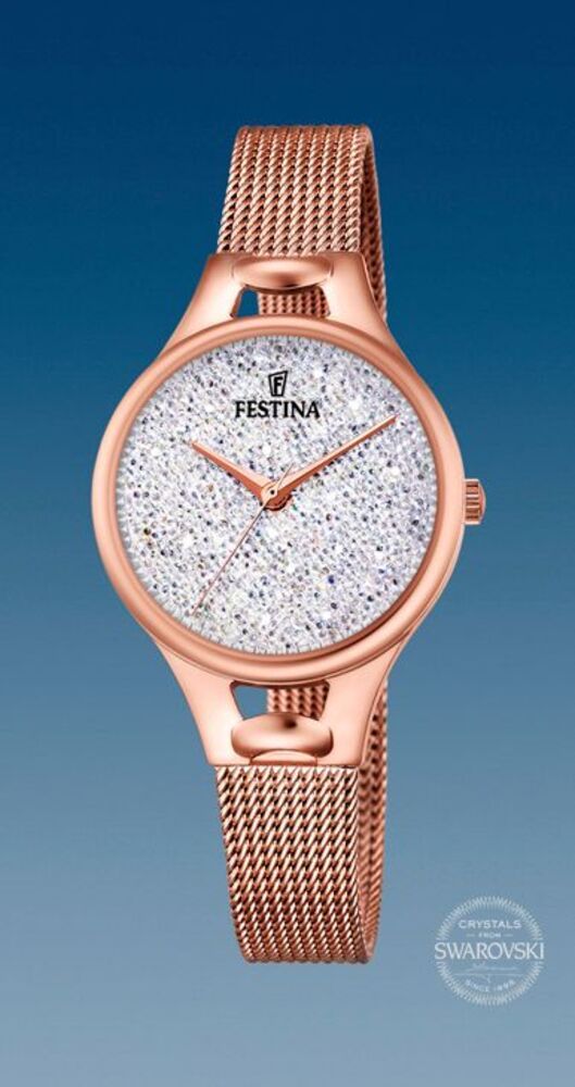 Reloj analógico de cuarzo, esfera con cristal de swarovski en color plateado.