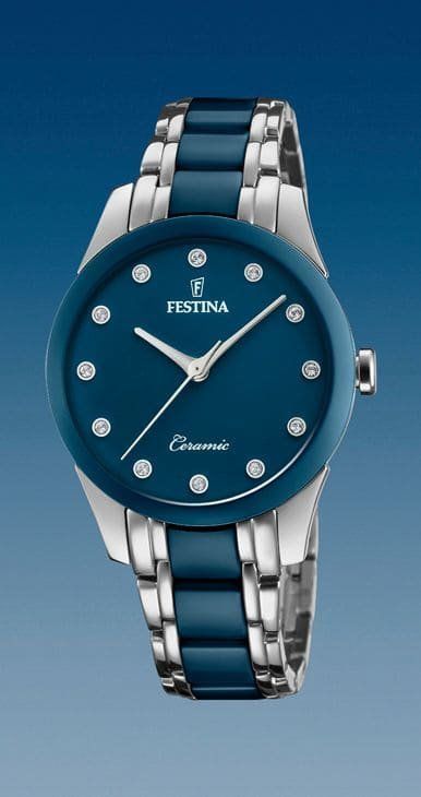 Reloj Festina, de Acero combinado con Cerámica Azul.