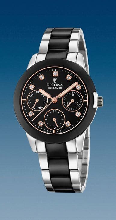Reloj Festina, Multifunción, de Acero combinado con Cerámica Negra.