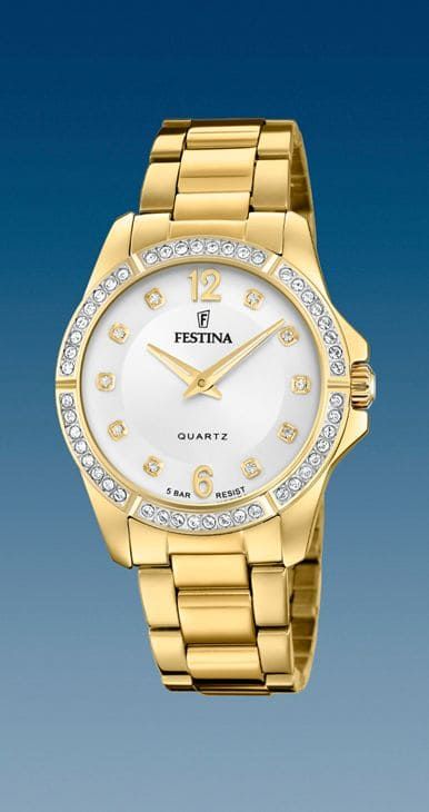 Reloj Festina, de Acero chapado en Oro, con circonitas engastadas.
