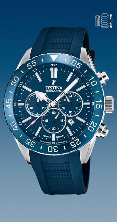 Reloj Festina, Chrono, que combina Acero, Cerámica y correa de caucho.