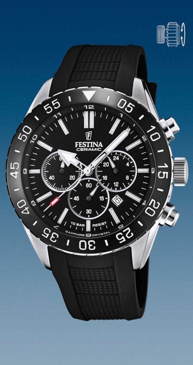 Reloj Festina, Chrono, que combina Acero, Cerámica y correa de caucho.