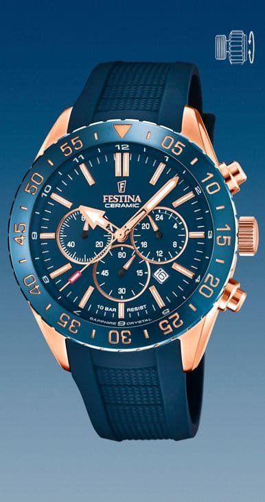 Reloj Festina, Chrono, que combina Acero chapado en Oro Rosa, Cerámica y correa de caucho.