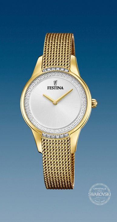 Reloj analógico de cuarzo, esfera con cristal de swarovski en color plateado.