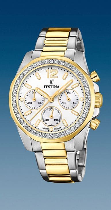 Reloj Festina Bicolor, Chrono Analógico, de Acero chapado en Oro.
