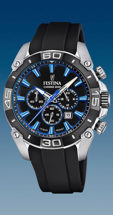 Reloj analógico de cuarzo, con esfera color azul, cronógrafo y calendario.