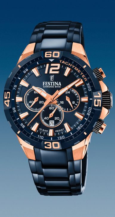 Reloj Festina Chrono, Analógico, de Acero combinado en IP Azul y chapado de Oro Rosa.