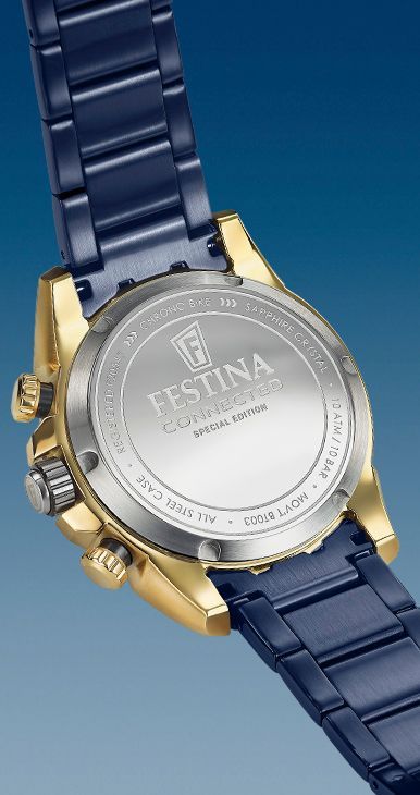 Reloj de caballero híbrido, en acero con armys de acero en ip azul y caja también de acero con baño de oro.