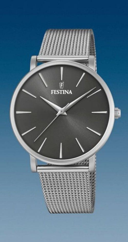 Reloj Festina de Cuarzo Analógico, en acero con armys tipo malla de 18,95 mm de ancho y caja de 38 mm de diámetro con esfera negra de cristal mineral.