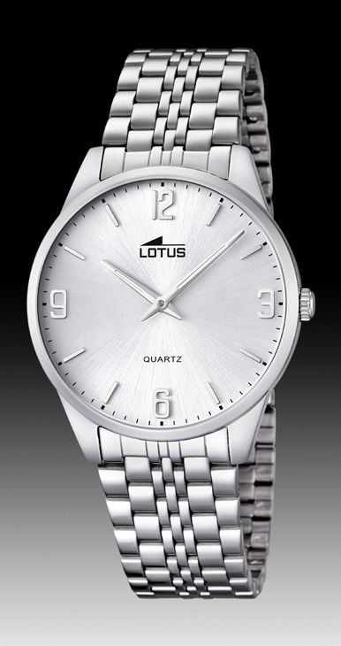 Reloj Lotus de cuarzo analógico estilo clásico, de esfera plateada.