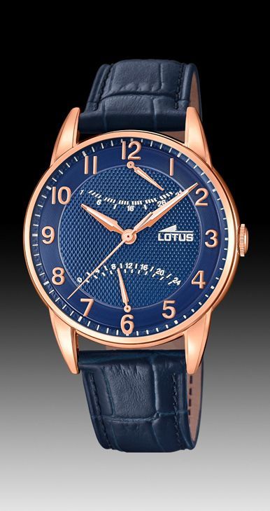 Con caja de acero chapada en oro rosa de 40,50 mm de diámetro, esfera marrón con calendario y correa de cuero en color marrón de 20 mm de ancho.