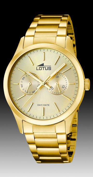Reloj Lotus de cuarzo analógico, de caballero, chapado en oro.