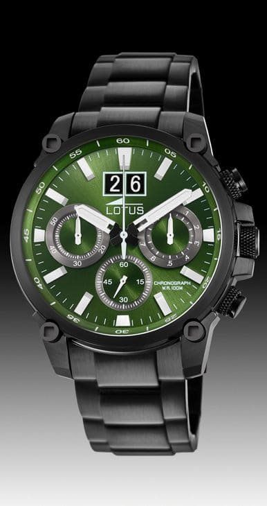 Reloj Lotus Chrono de Cuarzo Analógico, de caballero, de acero chapado en ip negro.