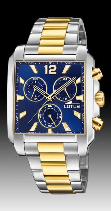 Reloj de Cuarzo, Analógico, con cronómetro, caja rectangular y armys de acero bicolores (acero combinado con chapado de oro)