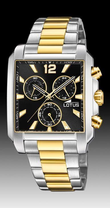 Reloj de Cuarzo, Analógico, con cronómetro, caja rectangular y armys de acero bicolores (acero combinado con chapado de oro)