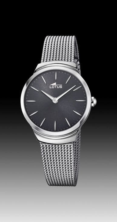 Con caja redonda de acero, con medida de 29 mm de diámetro.