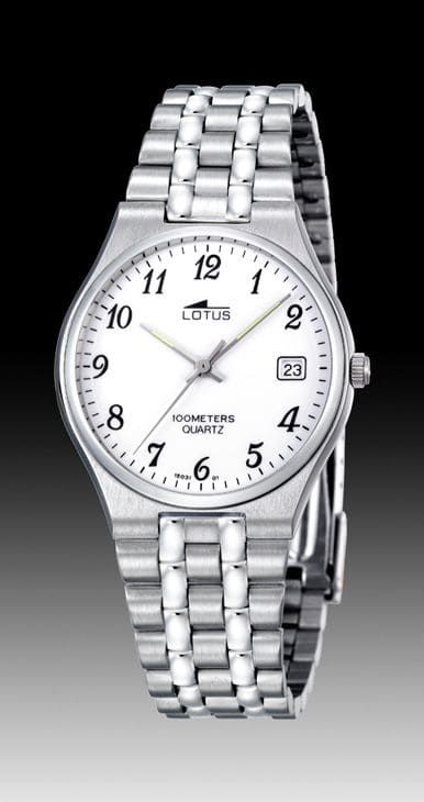 Con caja redonda de acero, de 35 mm de diámetro, y cristal mineral.
