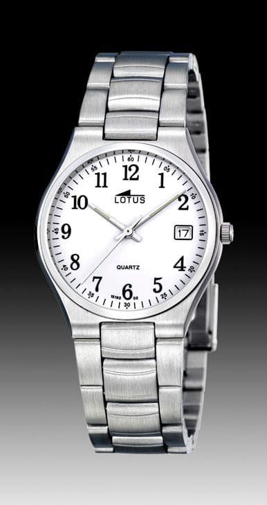 Con caja redonda de acero, de 35 mm de diámetro, y cristal mineral.
