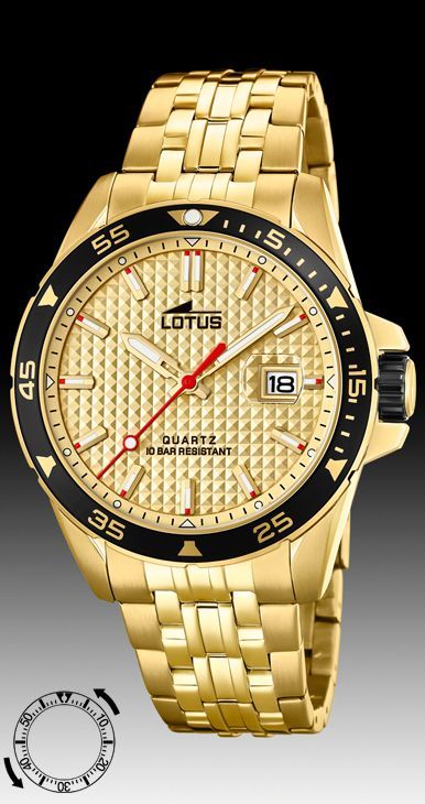 De acero con baño de oro, y sumergible, con 10 atmósferas.