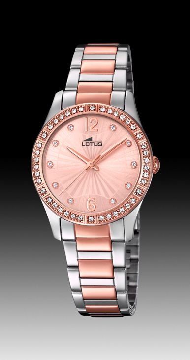 Reloj Bicolor de señora de cuarzo analógico en acero combinado con baño de oro rosa, disponible en varios colores.