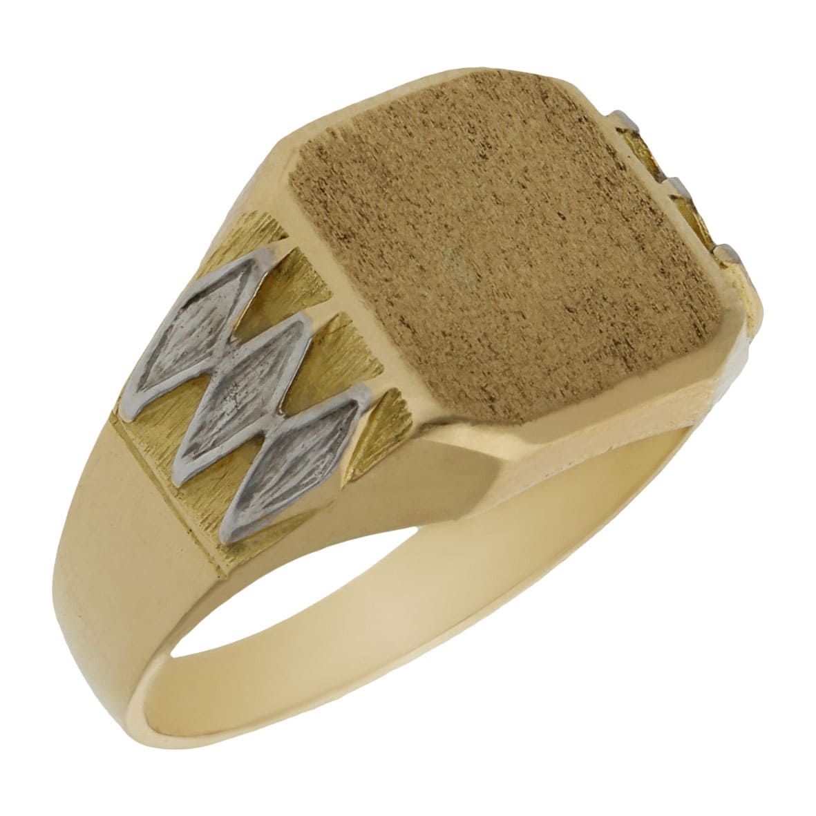 Sello bicolor con cabezal rectangular en oro amarillo y blanco de 18kts, tallado en los laterales con medida del cabezal en 12 x 14 mm.
