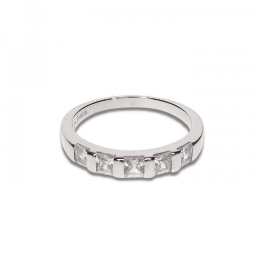 Sortija de Circonitas engastadas, en plata de 1ª ley, 925 mm.