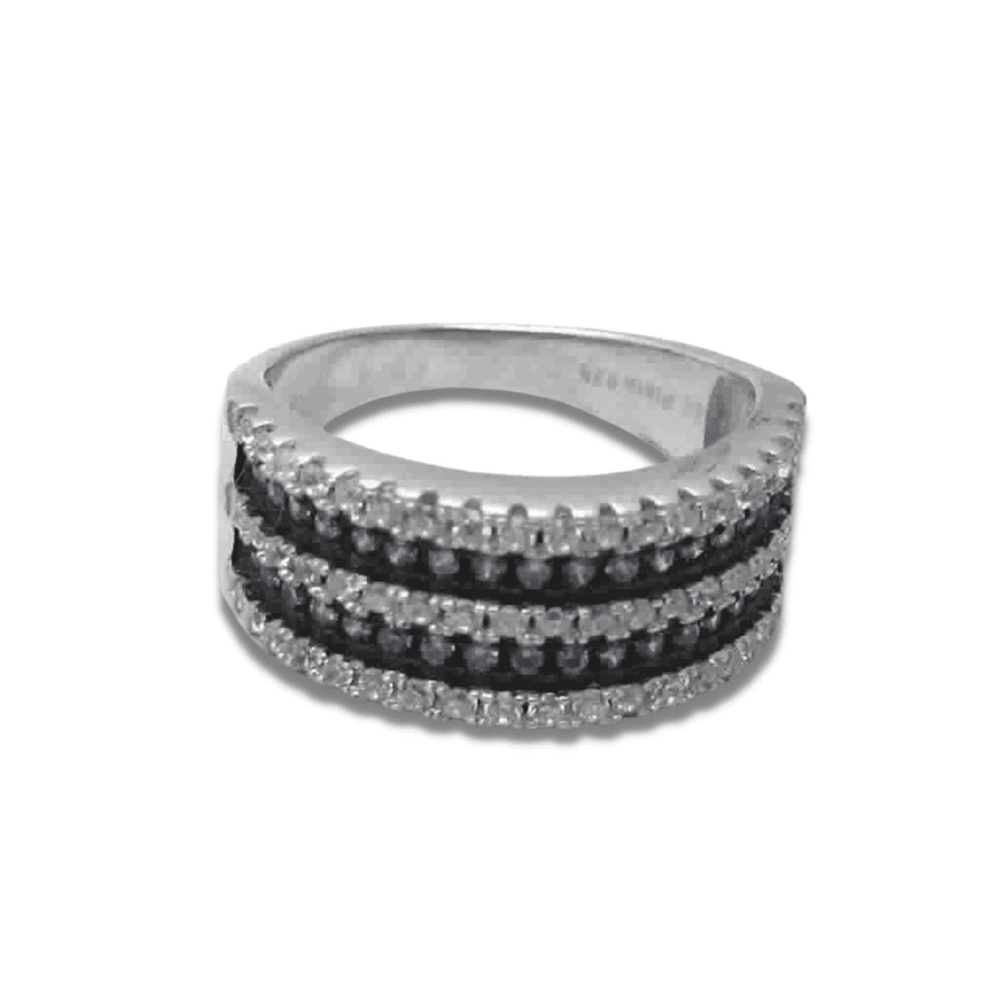 Con baño de rodio, combinada con circonitas de color en tono piedra Onyx y disponible en las tallas 12 y 20.
