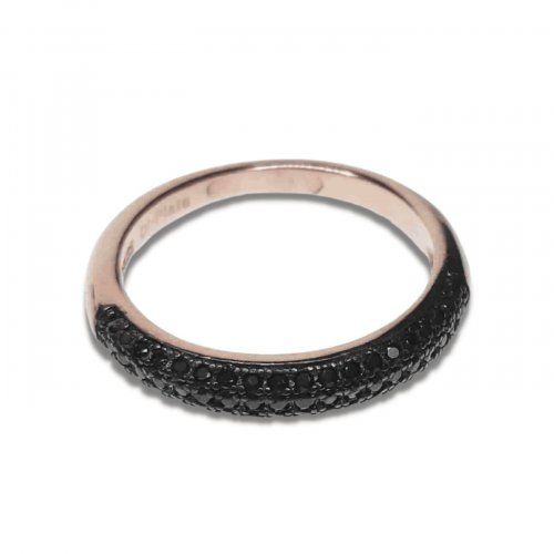 Con baño de oro rosa, circonitas en tono color Piedra Onyx y disponible en tallas de la 10 a la 20.