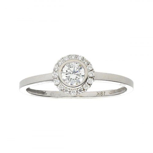 Sortija de motivo Redondo con circonitas engastadas, en Oro Blanco de 18kts, 1ªLey.