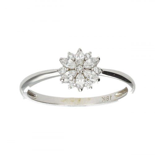 Sortija con circonitas engastadas en motivo floral, de Oro Blanco de 18kts, 1ªLey.