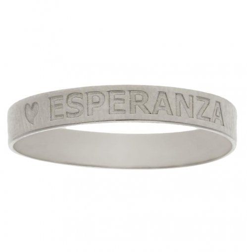 Sortija con nombre personalizado y corazón grabado, en Oro Blanco de 18kts, 1ªLey.
