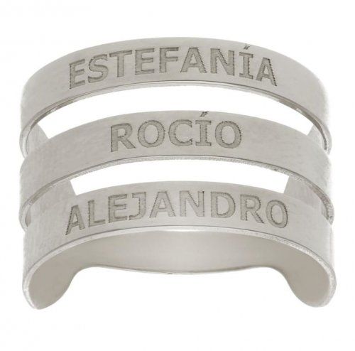 Sortija triple, en Oro Blanco de 18kts, 1ªLey.