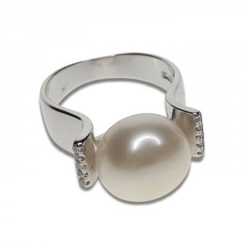 Sortija con Perla, en plata de 1ª ley, 925 mm, y un baño de rodio.