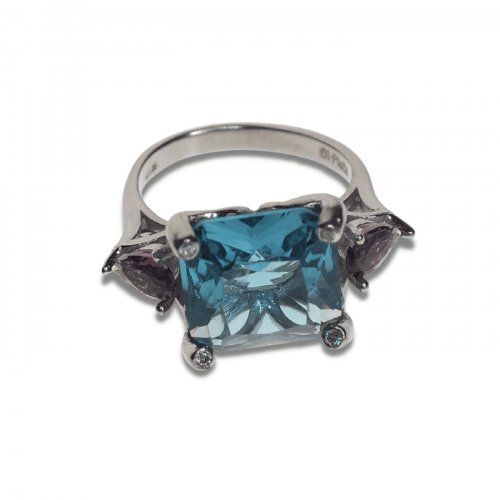 Sortija de Piedras, en plata de 1ª ley, 925 mm.