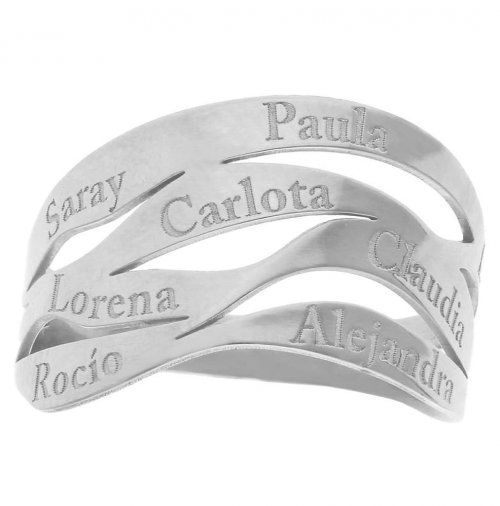 Sortija de Ondas, en Plata de 1ªley, 925 mm, para personalizar con un máximo de 9 nombres.