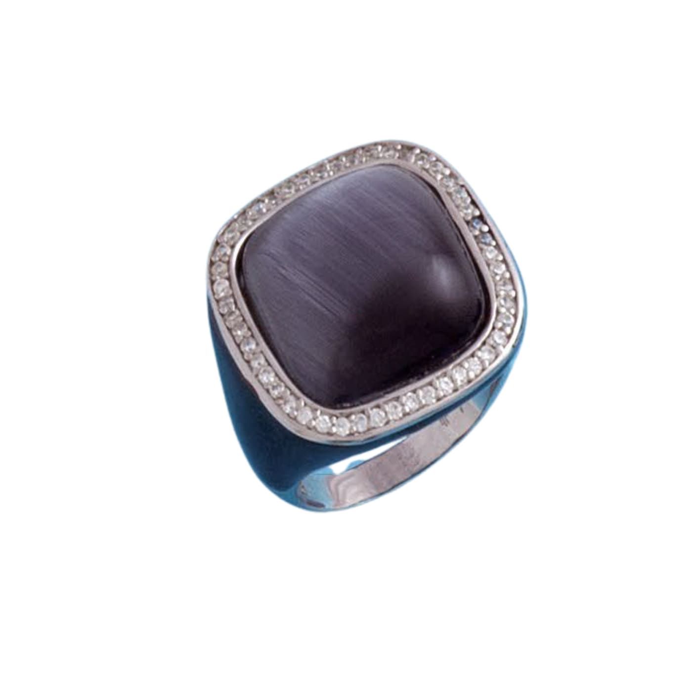 Sortija, con piedra Ojo de Gato en color gris y circonitas, en plata de 1ª ley, 925 mm.